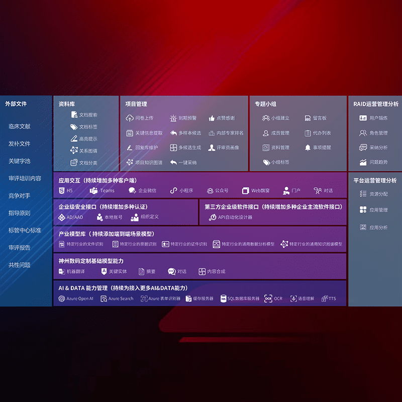 医疗器械产品上市前,,,,要熟悉严格与繁复评审标准,,,,整理分析监管机构指导文件中的海量信息。。。企业急需一个智能化解决方案,,,,提升知识管理效率,,,提高评审通过率,,,以提升其市场竞争力。。。。